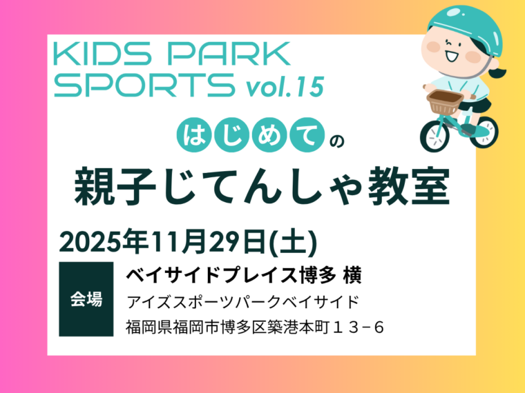 【福岡県福岡市】2025年11月29日(土)〜はじめての親子自転車教室〜KIDS PARK SPORTS(ベイサイドプレイス博多 横(アイズスポーツパークベイサイド))