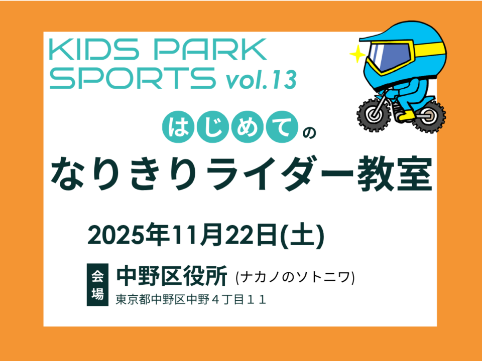 | 参加条件 | 3~12歳のお子様と保護者。 自転車に乗れないお子様用に、補助バー付き車両を用意しています。保護者の方がバーを掴んで徒歩で追走してあげて下さい。 お子様のみの参加はご遠慮下さい。 参加費は参加されるお子様分のみとなります。 (付き添いの保護者分の費用はかかりません) |