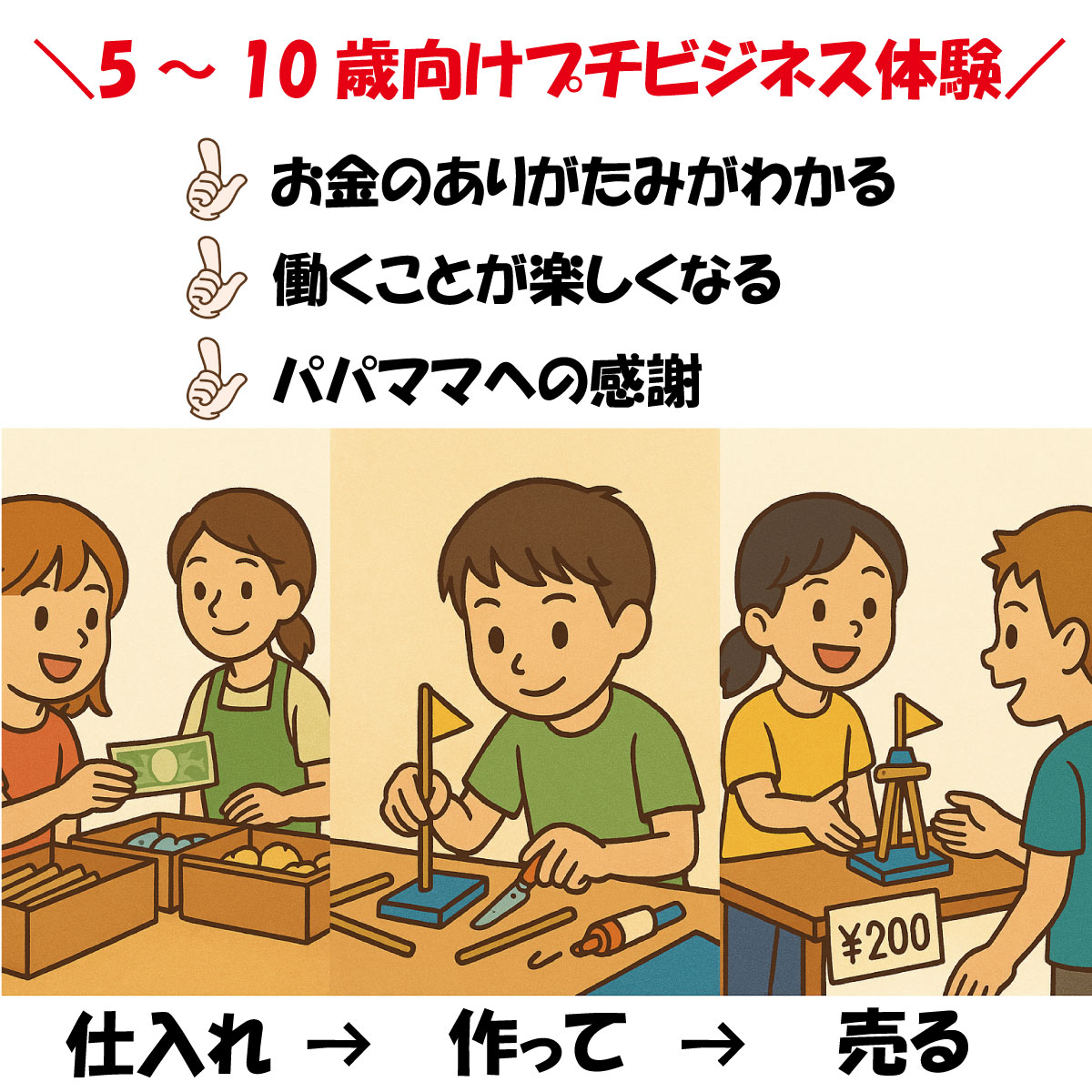 - 成長する:お金のありがたみ、はたらくことの楽しさを覚えます!