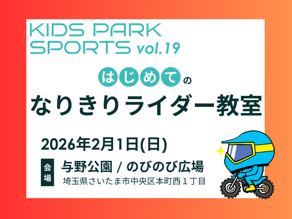 | 参加条件 | 3~12歳のお子様と保護者。 自転車に乗れないお子様用に、補助バー付き車両を用意しています。保護者の方がバーを掴んで徒歩で追走してあげて下さい。 お子様のみの参加はご遠慮下さい。 参加費は参加されるお子様分のみとなります。 (付き添いの保護者分の費用はかかりません) |