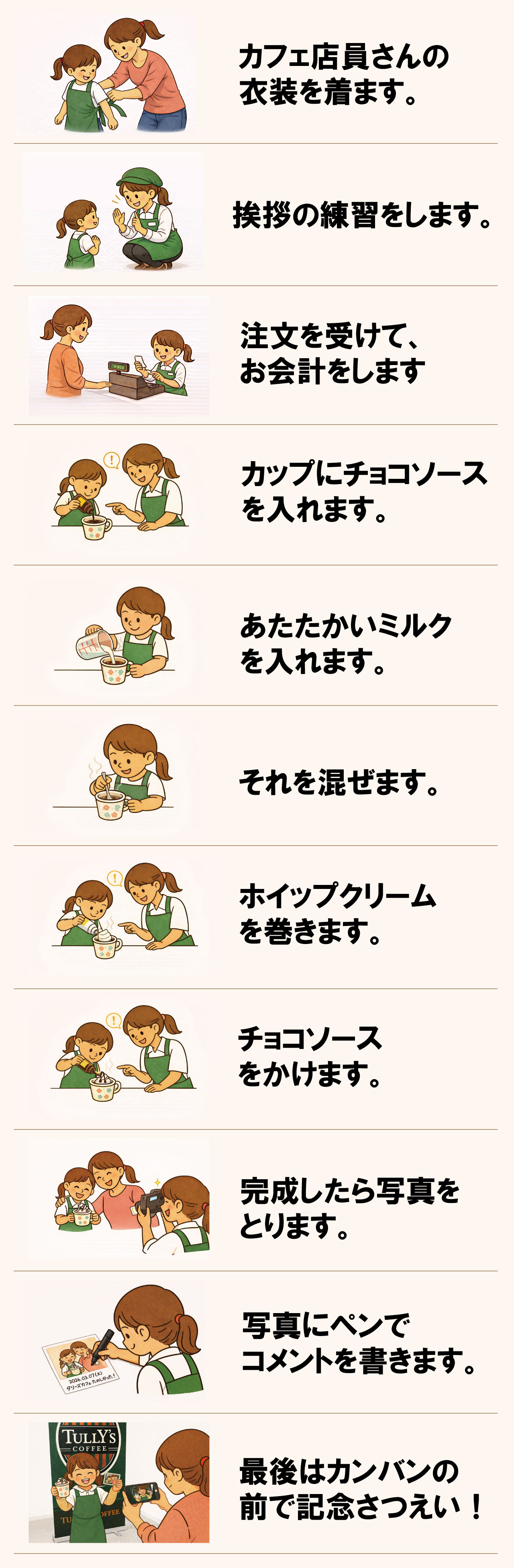 タリーズのカフェ店員さんになりきって、カフェ定員体験をします!