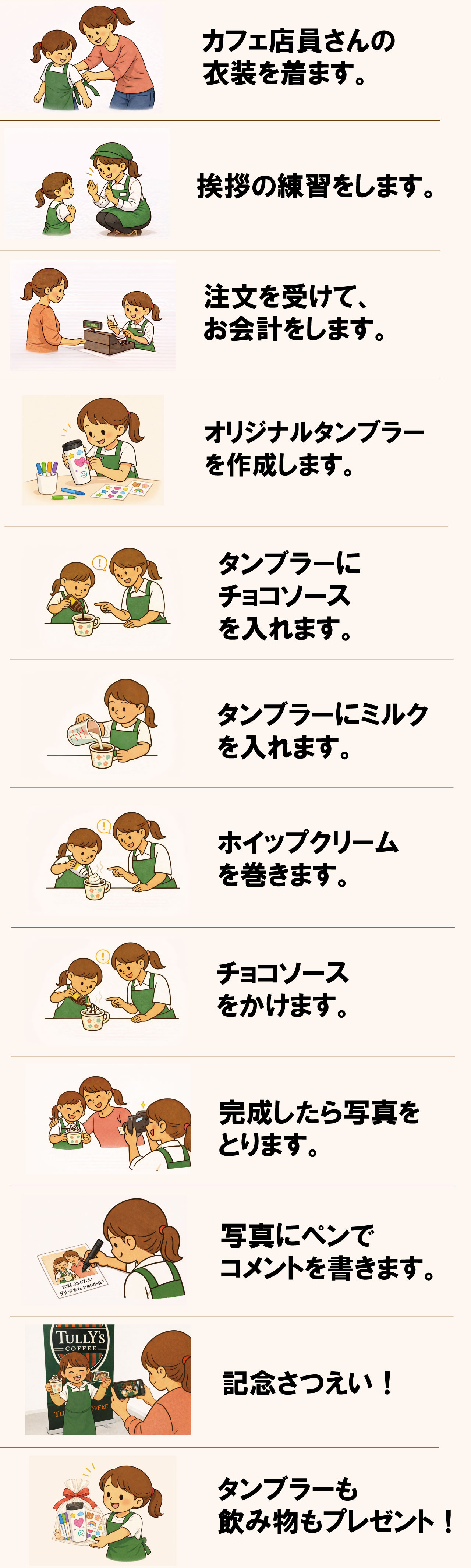 タリーズのカフェ店員さんになりきって、カフェ定員体験をします!