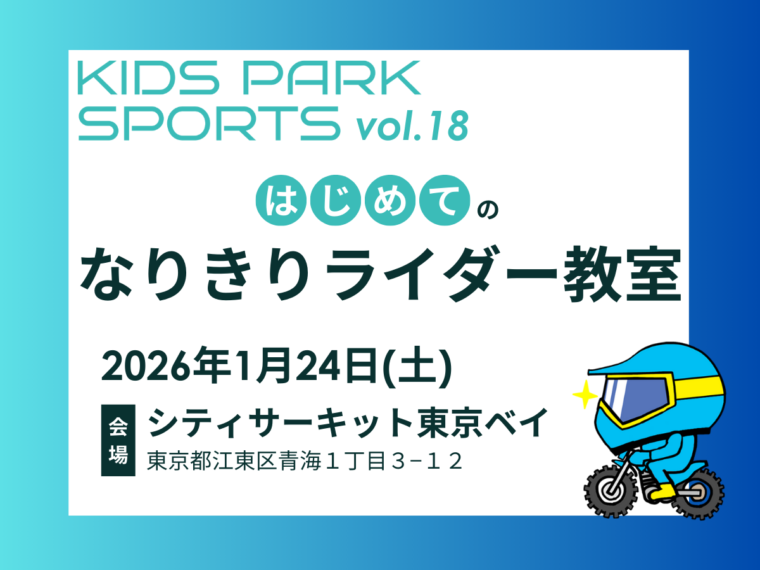 【東京都江東区青海】2026年1月24日(土)〜はじめてのなりきりライダー教室〜KIDS PARK SPORTS Vol.18(シティサーキット東京ベイ)