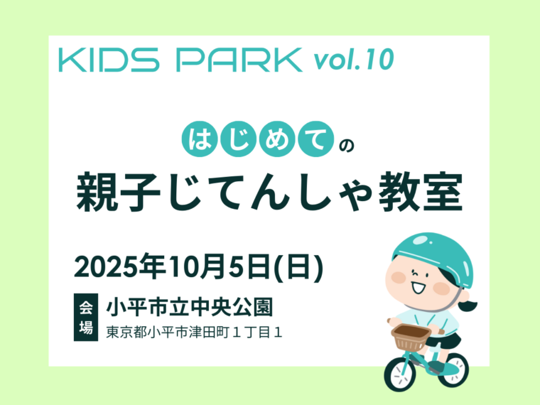 【東京都小平市】2025年10月5日(日)〜はじめての親子自転車教室〜KIDS PARK SPORTS(小平市立中央公園グラウンド)