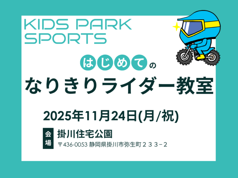 【静岡県静岡市】2025年11月9日(日)〜はじめてのなりきりライダー教室〜KIDS PARK SPORTS(葵住宅公園)