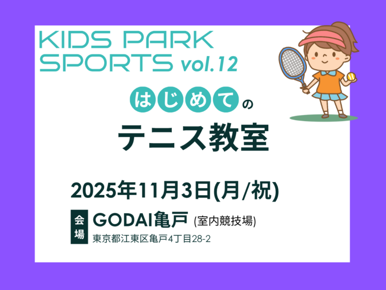 【東京都江東区】2025年11月3日(月/祝)〜はじめてのテニス教室〜KIDS PARK SPORTS(GODAI亀戸)
